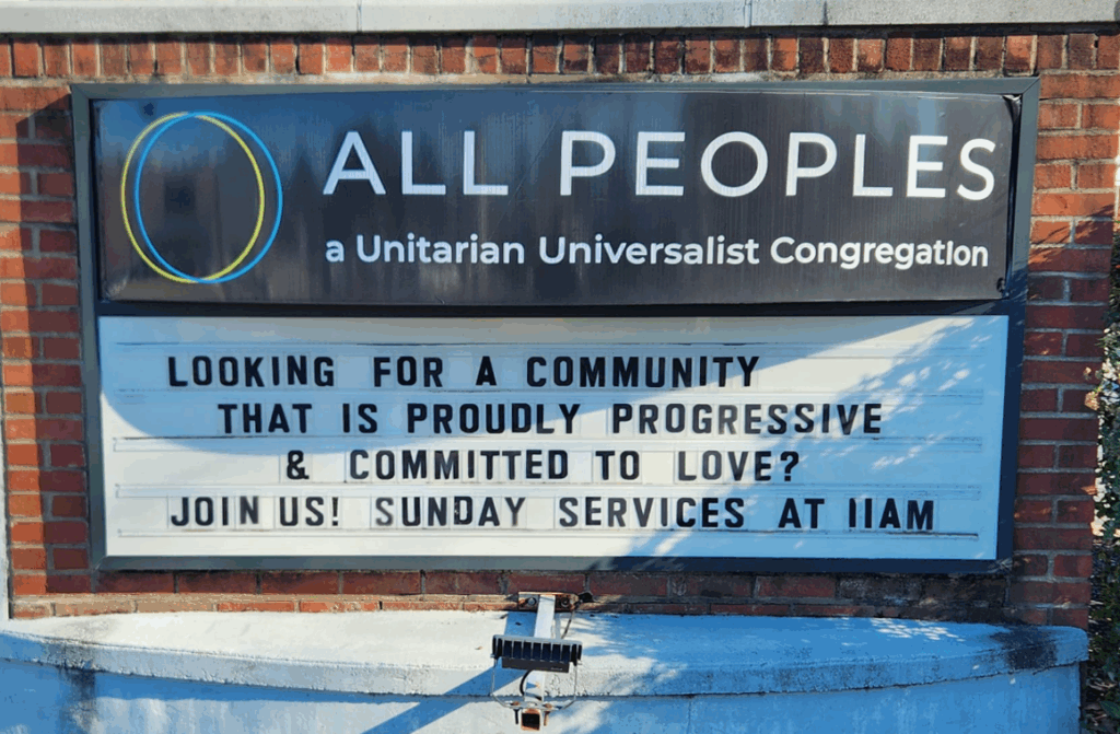 Our members officially voted to change the church’s name to “All Peoples-a Unitarian Universalist Congregation” as part of our efforts to grow into a more diverse, multi-cultural beloved community. In May of 2021, All Peoples members voted to call Rev. Bruce Beisner to serve as our settled minister.