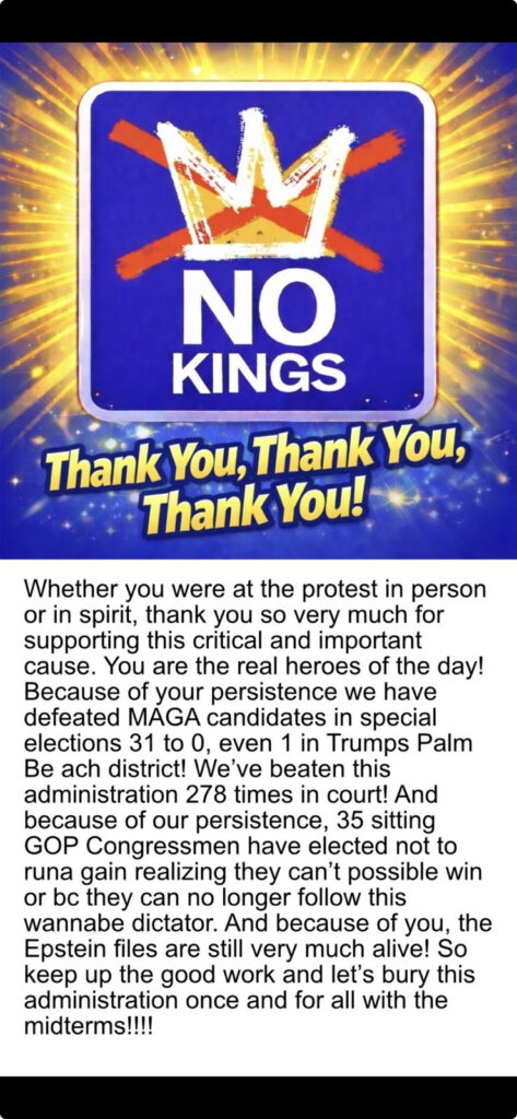 These protests went beyond mere opposition, acting as a bold defense of constitutional norms against perceived king-like overreach—echoing warnings from the Founders. In a polarized era, their widespread support across red and blue states showed that civic activism remains a unifying force for accountability, voter engagement, and policy change on issues like immigration and endless wars. No Kings 3 was not just a spectacle; it was a rallying cry to energize grassroots power.