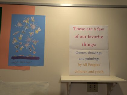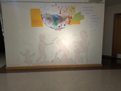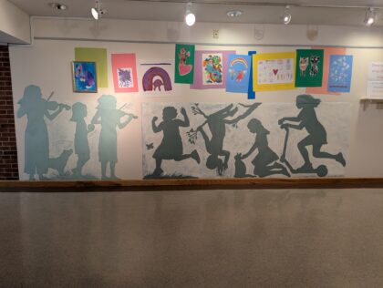 Artwork was created at church or brought from home. Silhouettes were made by drawing around children who chose how they wanted to be depicted. Children laid down on the paper on the floor while an adult sketched an outline. Enjoy learning about our children!