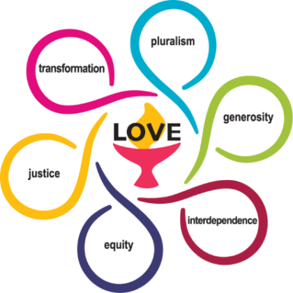 Unitarian Universalism is a living tradition that is expressed through shared values, all centered around LOVE: